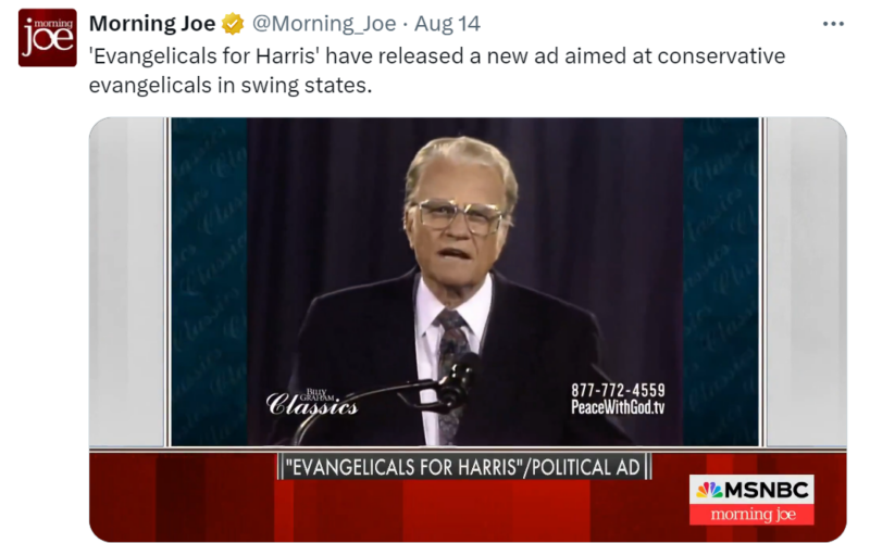 In late 2020, ‘Pro-Life Evangelicals for Biden’ launched to much fanfare. These men and women championed voting for the Democrats as having the most pro-life ethic of all, certainly way more than the Republicans. Still, the group shut down ten months later, lamenting and crying foul in a fit of disappointment and betrayal after the … Continue reading Franklin Graham Bashes ‘Evangelicals for Harris’ After Featuring His Late Father, Billy Graham, in Anti-Trump Ad