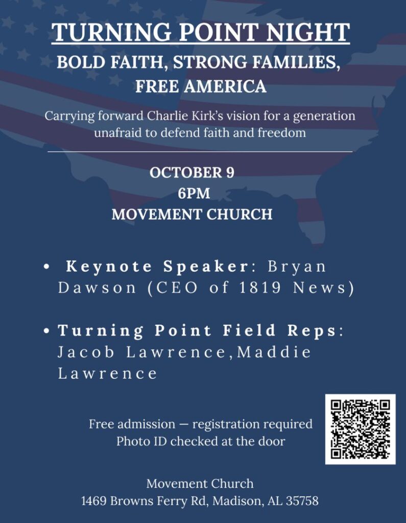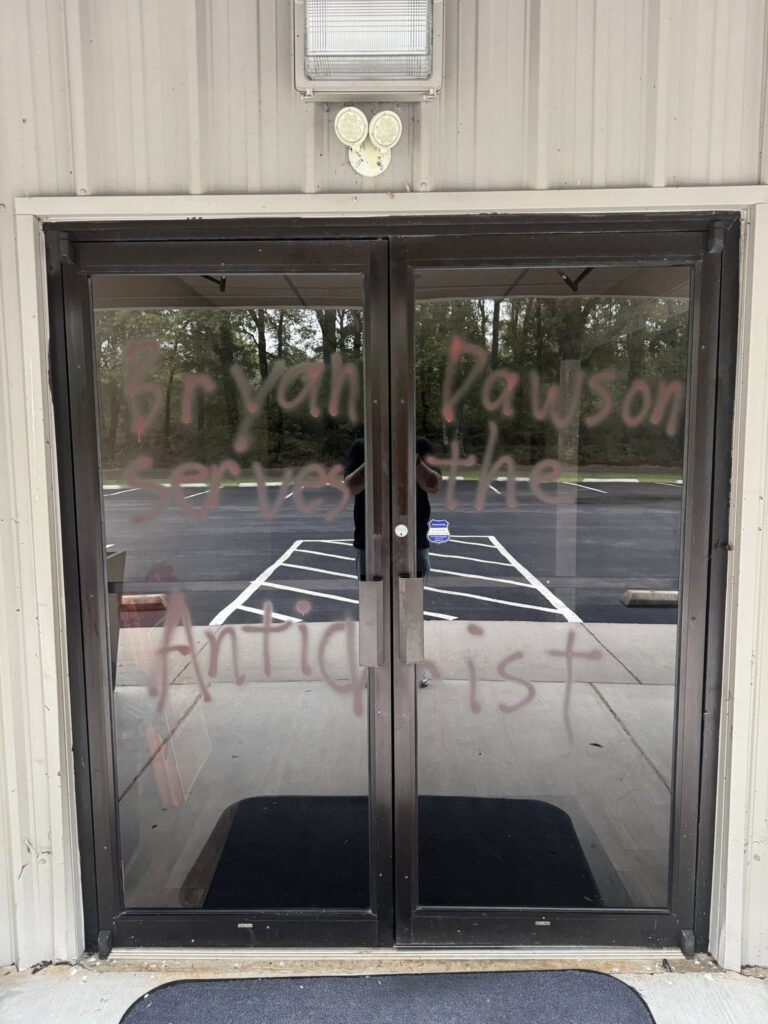 Days after the Movement Church of Madison, AL, announced they were hosting a TPUSA event, vandals defaced the church with graffiti, writing “Bryan Dawson serves the antichrist” and “Beware his falsehoods” on the exterior.