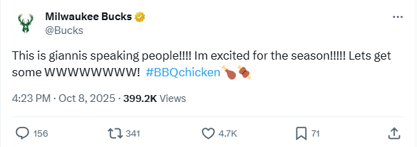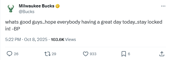 A couple of days ago, the Milwaukee Bucks had players take over their official NBA ‘X’ account and share whatever was on their mind. Predictably, it was a mixture of hype and nonsense, with a small sampling below: