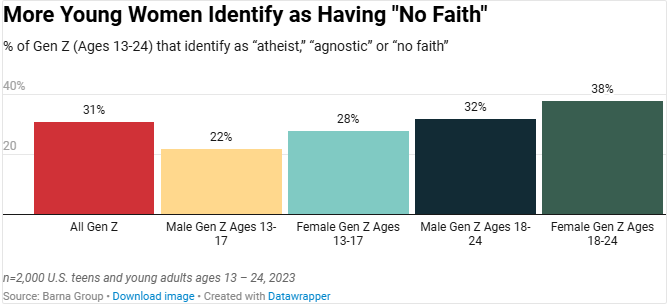 Barna Survey: 40% Of Gen Z Women Identify as Atheist or Agnostic. Teen Boys Most Spiritually Active
