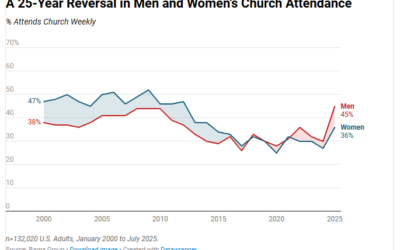 A major shift in church demographics is occurring, with a recent Barna survey reporting that “Men are significantly outpacing women in church attendance since the pandemic, reversing a long-standing trend in Barna’s decades of tracking,” and that these “new patterns of participation and disengagement among key groups may reshape the fabric of church life in … Continue reading New Survey Shows Major Gender Shift In Church Attendance: Men Now Most Dominant Demographic