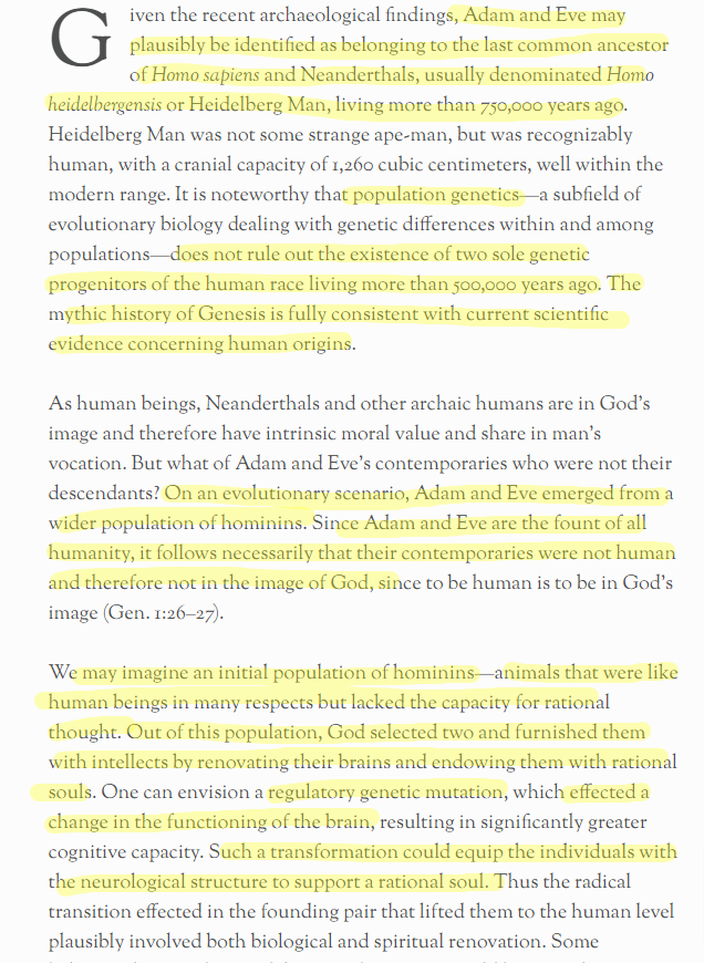 In a new video, Lane, who rejects the literalness of Genesis 1-11, repeats his claim that Adam and Eve were members of the archaic pre-homosapien species Homo heidelbergensis that lived 750,000 years ago, and represents those who received a ‘divinely caused’ genetic mutation, perhaps over 50,000 years, which caused greater brain capacity and the ability to have a soul.