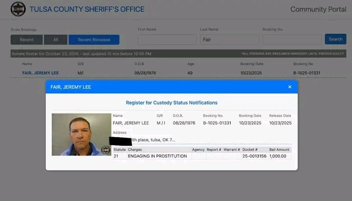 Jeremy Fair, the senior pastor of Christ Presbyterian Church in Tulsa, OK was arrested late last week in a prostitution sting after being nabbed allegedly meeting up with a prostitute for sex.