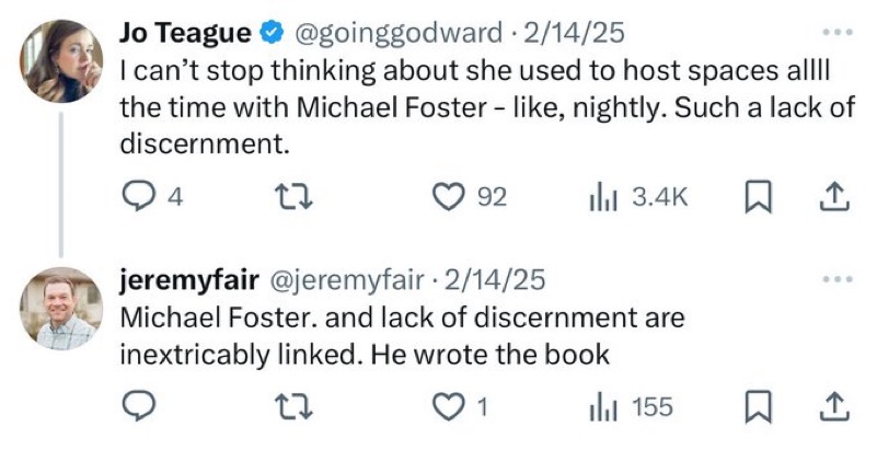 While fair has since deleted his social media accounts, pastor Michael Foster pointed out that for someone who chided him on social media for his lack of discernment, in the end it was always the other way around.