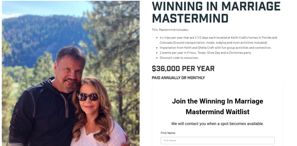 Craft has a solution for you, offering a “Winning in Marriage Couples Mastermind.” He explains: