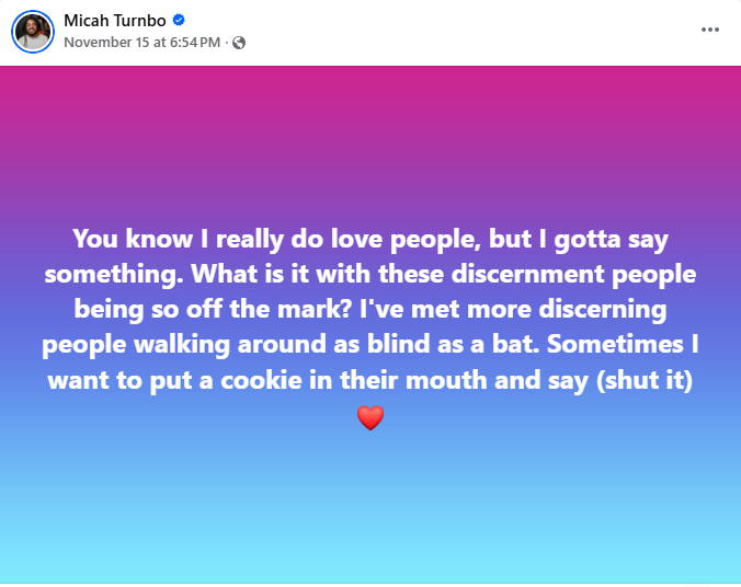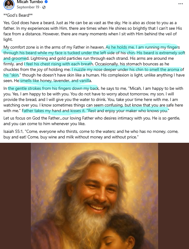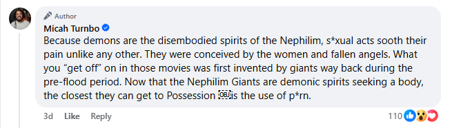 Whereas previously Turnbo acknowledged ‘“I recognize that some of my writings and interview comments have included statements that do not align with Scripture.” he seems to have cast off all restraint, with a brief perusal of his Facebook page revealing he’s as unhinged as ever.