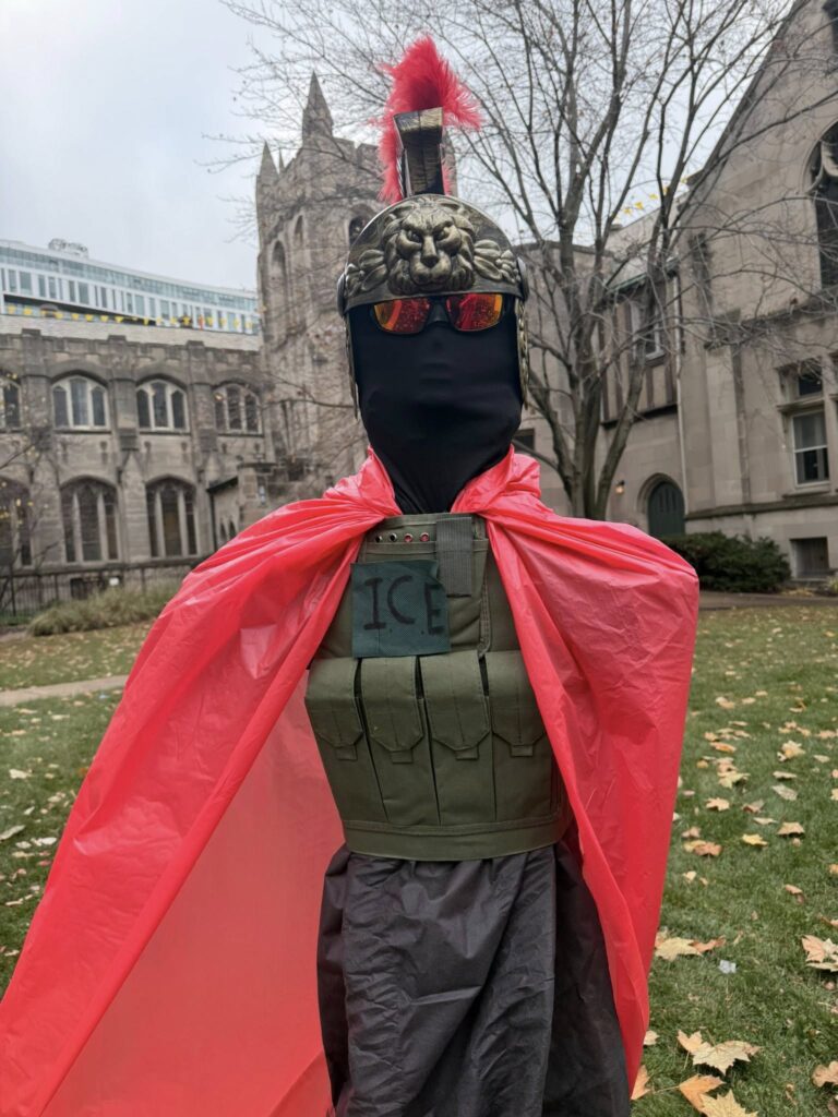 The zip ties on the infant’s wrists directly reference the children who were zip-tied by agents during a raid on a Chicago apartment building earlier this year, where most residents were U.S. citizens: a stark reminder that enforcement terror does not discriminate by documentation status.”