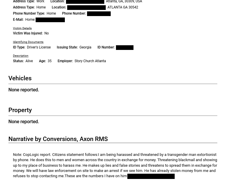 A police record of the attempted extorntion reads: