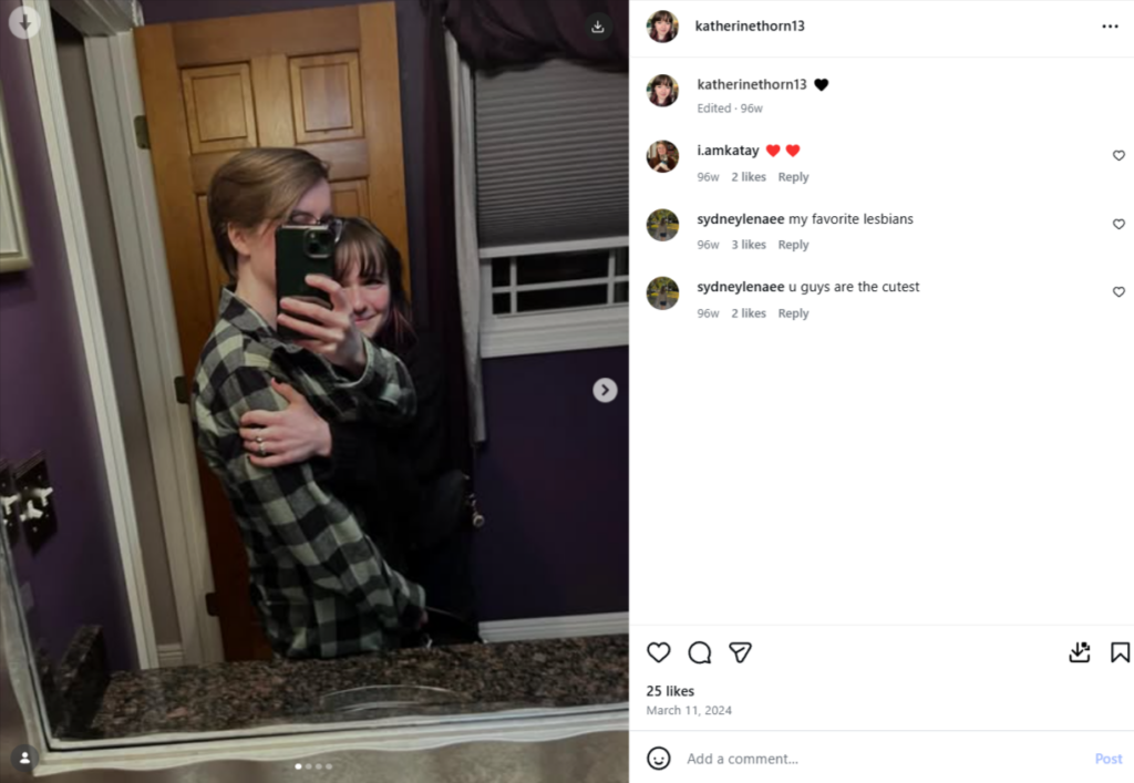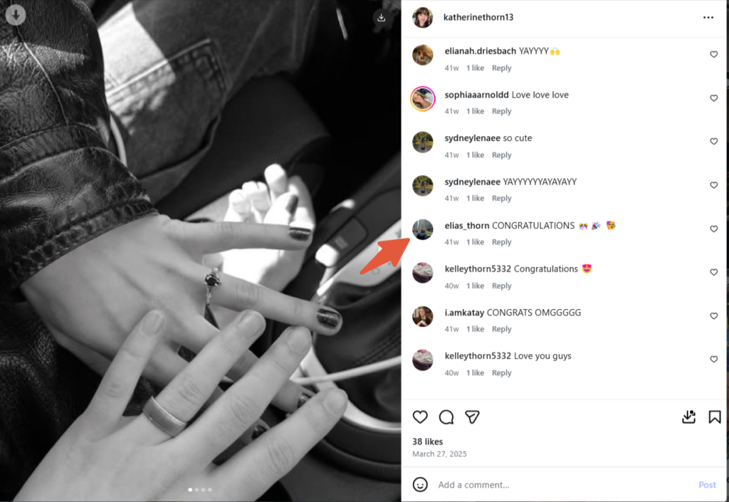 Notably, along with attending the wedding, several of Thorn’s children have been publicly celebrating the relationship, either by “liking” social media statuses of the couple hugging and cuddling, or commenting on it directly with statements like “Lgf” (“Let’s F****** Go” or “Let’s Freaking Go.” While their approval has been prolific, here are a few examples.