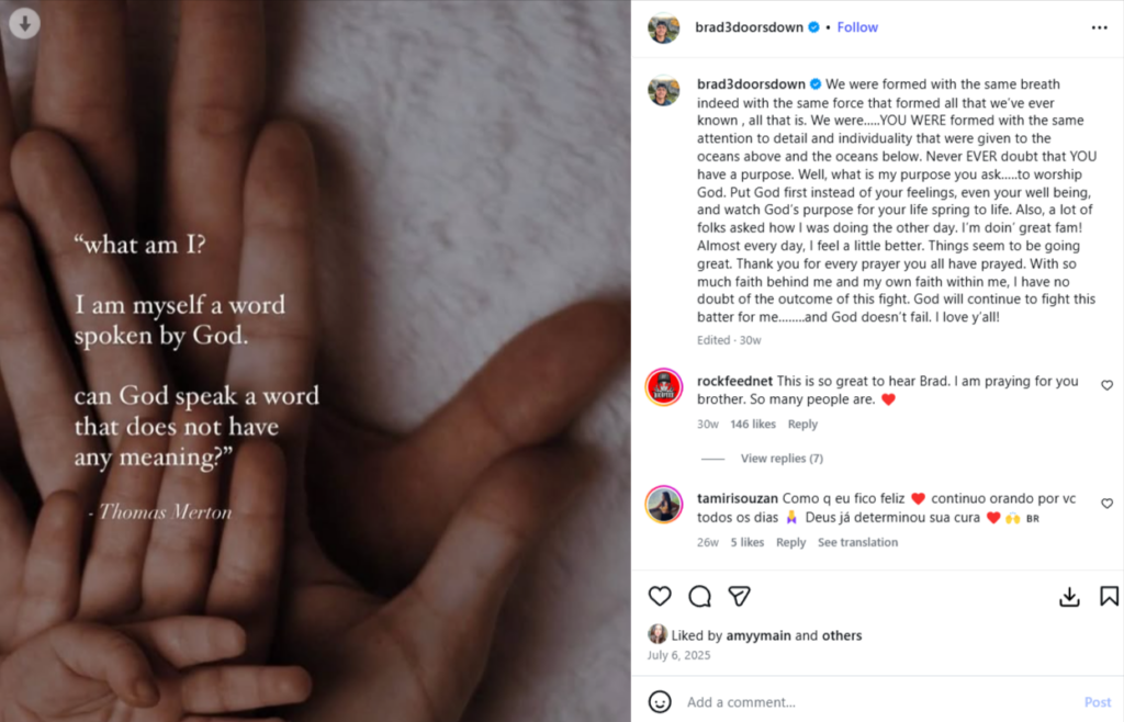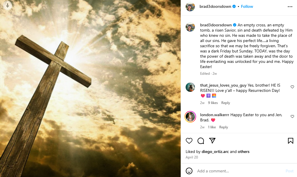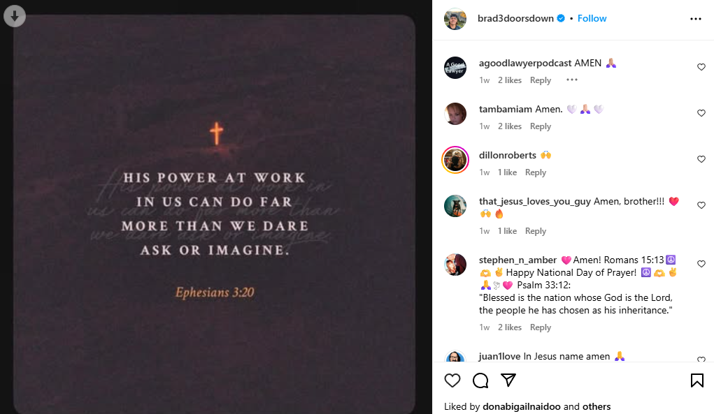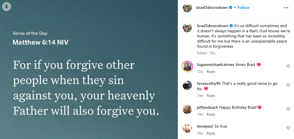 Arnold, who wrote the band’s biggest hit ‘Kryptonite’ when he was just 15, was a professing Christian that routinely shares scripture and testimony on his Instagram page: