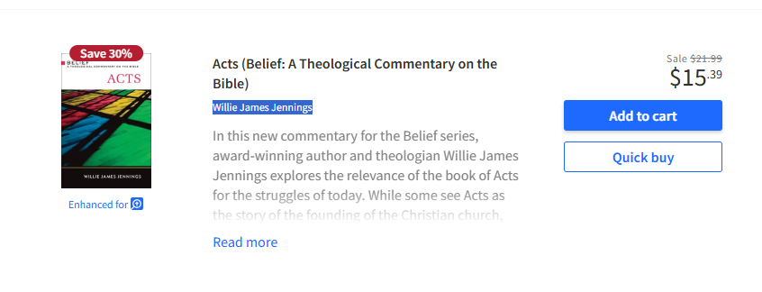 Notably, one of the first books on the list is a commentary by Willie James Jennings. Jennings is an ordained Baptist minister who teaches systematic theology and Africana studies at Yale University Divinity School. He is also a committed LGBTQ-affirming progressive, teaching liberation theology and championing intersectionality DEI.