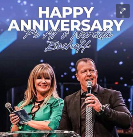 At is happily married to Pastor Nyretta Boshoff. She heads up the Creative Arts ministry and directs the Music ministry of the congregations in Bloemfontein, Pretoria, and Johannesburg. She’s also the executive producer of CRC’s in-house praise and worship music release albums, speaks at women’s conferences, heads up the women’s ministry, ministers to the CRC pastors’ wives, and organizes and coordinates various CRC events.