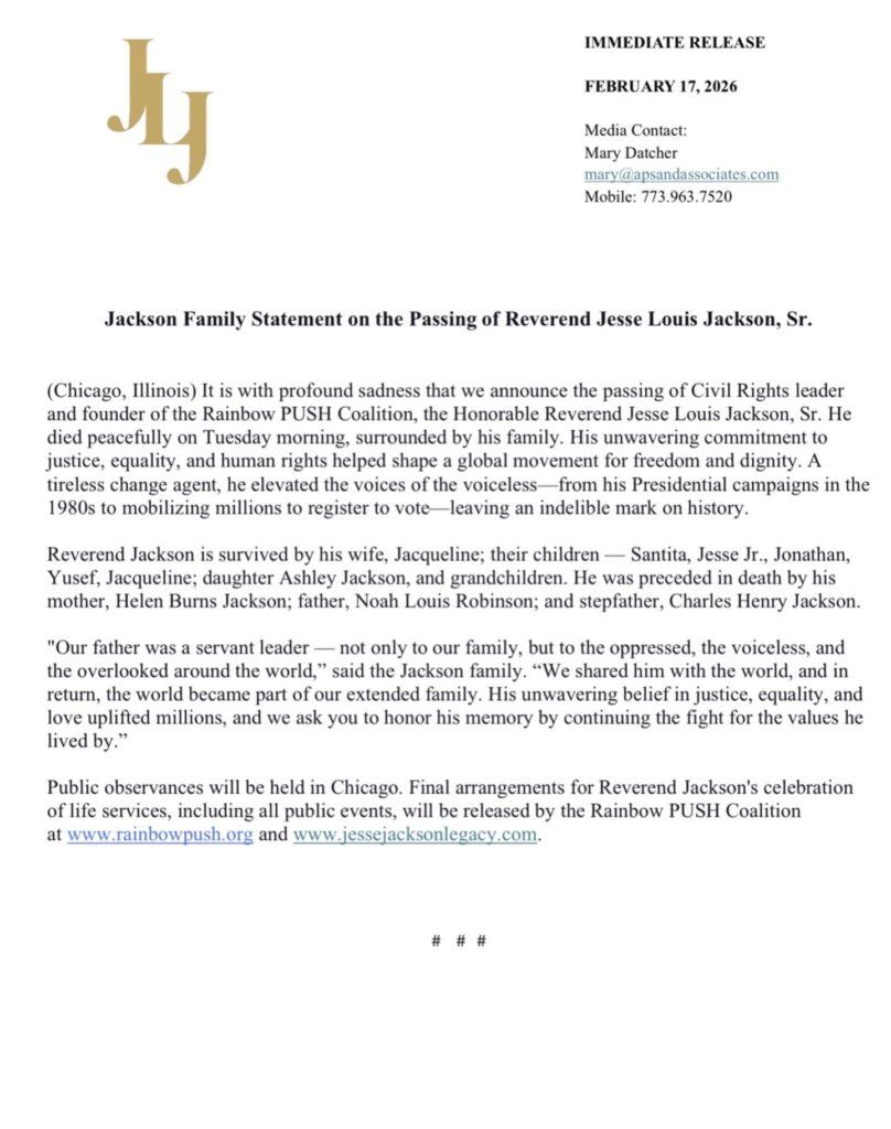 The famed civil rights leader, the Rev. Jesse Jackson, passed away early this morning at the age of 84 following a long battle with Parkinson’s disease. His family said in a statement: