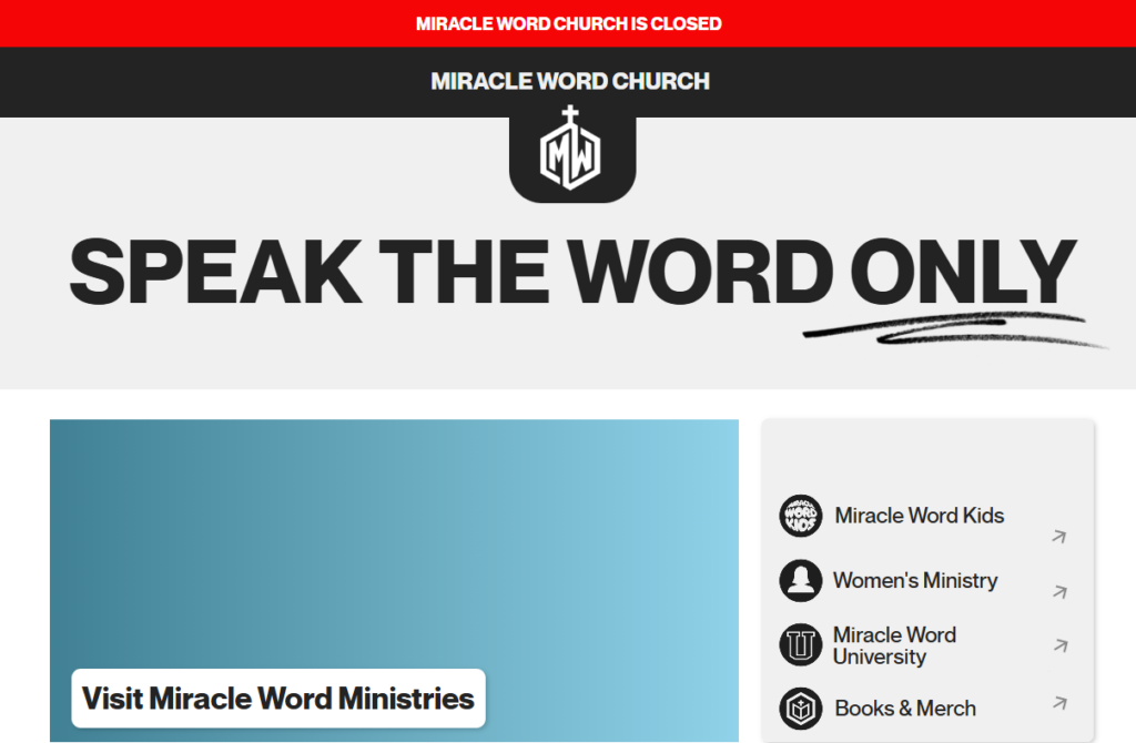 While the church’s social media pages haven’t been updated in a while, a banner at the top of Miracle Word Church in West Palm Beach, Florida reads that the church is closed.