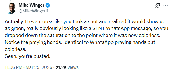 Lastly, to make a point, Winger crafted his own fake message.
