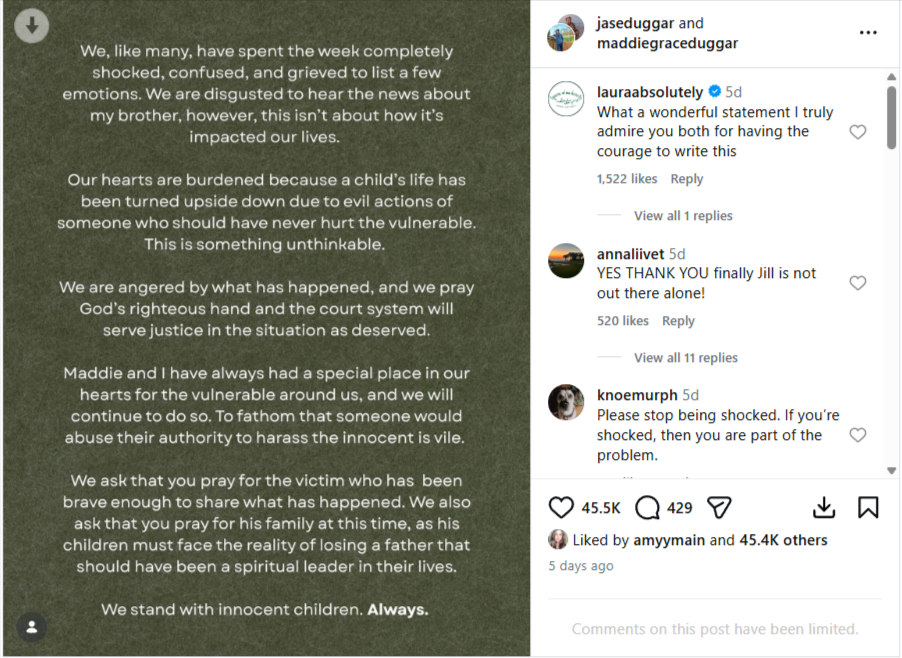 Other members of the Duggar clan have weighed in, including Jason and his wife Maddie, who said in a statement: