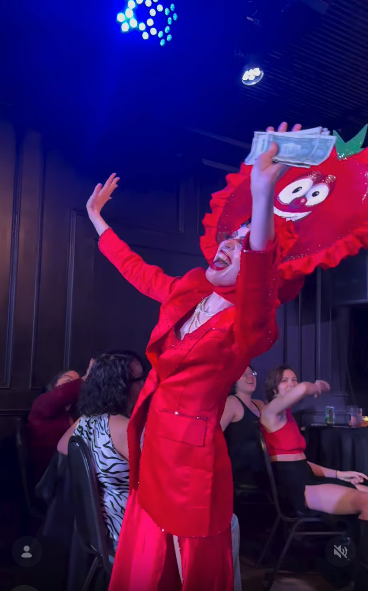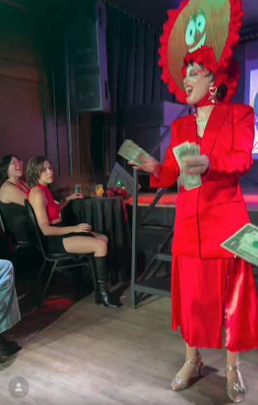 The queens danced and lip-synced to the show’s biggest hits and Silly Songs with Larry, including “His Cheeseburger,” “The Hairbrush Song,” “The Rumor Weed,” and “The Bunny Song,” while onlookers threw dollar bills at them.