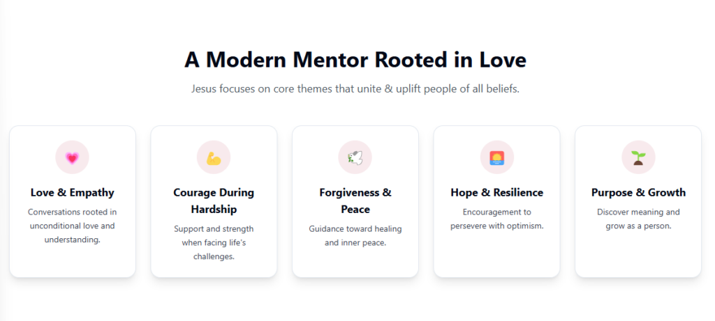 “Jesus AI offers a compassionate presence to help you navigate real-life challenges with positivity and clarity.