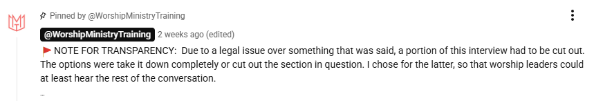 And you know, with being a leader, know, there’s a lot that’s happening that we can’t and don’t want to talk about on a public platform, especially where discipline is happening. When someone does something wrong, the thing I know to be very true about Bethel it is that they deal with it and they have action. You know, one of the main accused people was not even on our staff. It was just someone who was a guest at our conferences. (Ed. note. He was waaaaaay more than that)